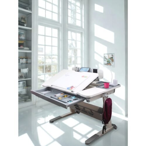 Creo Mobili Fonksiyonel Genç Odası Masası Çekmeceli, Yükseklik Ayarlı – 120×75 Cm, Beyaz/Gri – Sirius Standart