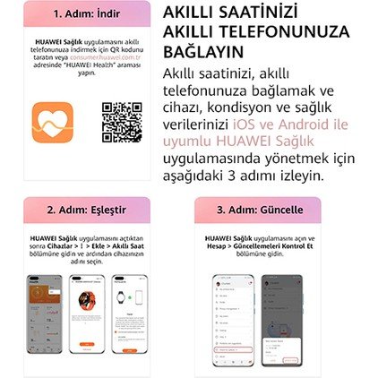 Always On Display etkin, haftada 30 dakika Bluetooth araması, haftada 30 dakika ses çalma, kalp atış hızı izleme etkin, HUAWEI TruSleep™ gece etkin, stres izleme etkin, nabız dalgası aritmi analizi ve uykuda nefes farkındalığı özellikleri etkin, haftada 180 dakika egzersiz (GPS etkin), mesaj bildirimleri etkin (günde 50 SMS mesajı, 6 arama ve 3 alarm) ve ekran günde 30 dakika açılır. Gerçek batarya ömrü kullanım alışkanlıklarına bağlı olarak değişebilir.
